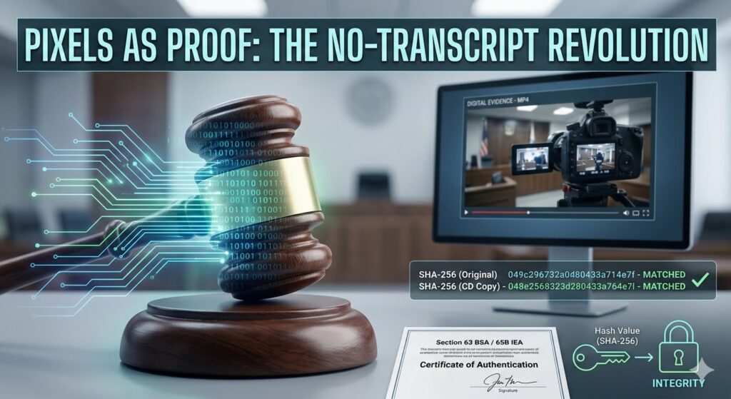 - No Transcript Needed: If you have a valid Section 63 BSA / 65B IEA certificate, the video is admissible as-is. You don’t need to “translate” pixels into paper.